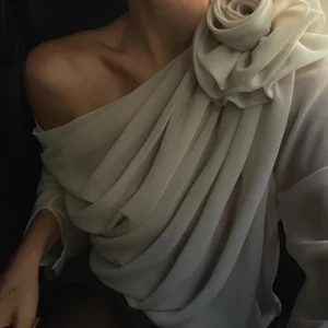 ByeMyLove Slope Shoulder Blouse Asymmetric Cropped Blouse Apricot Pile Up Shirts Women Top Autumn New Elegant Fashiin Blouse