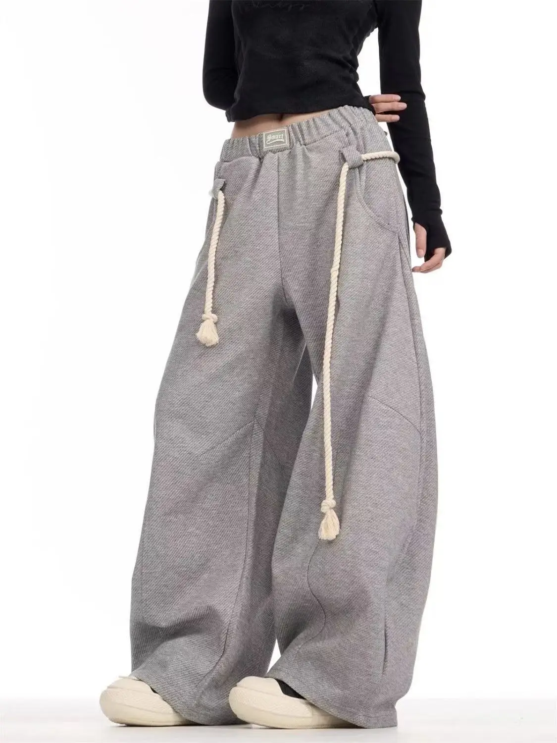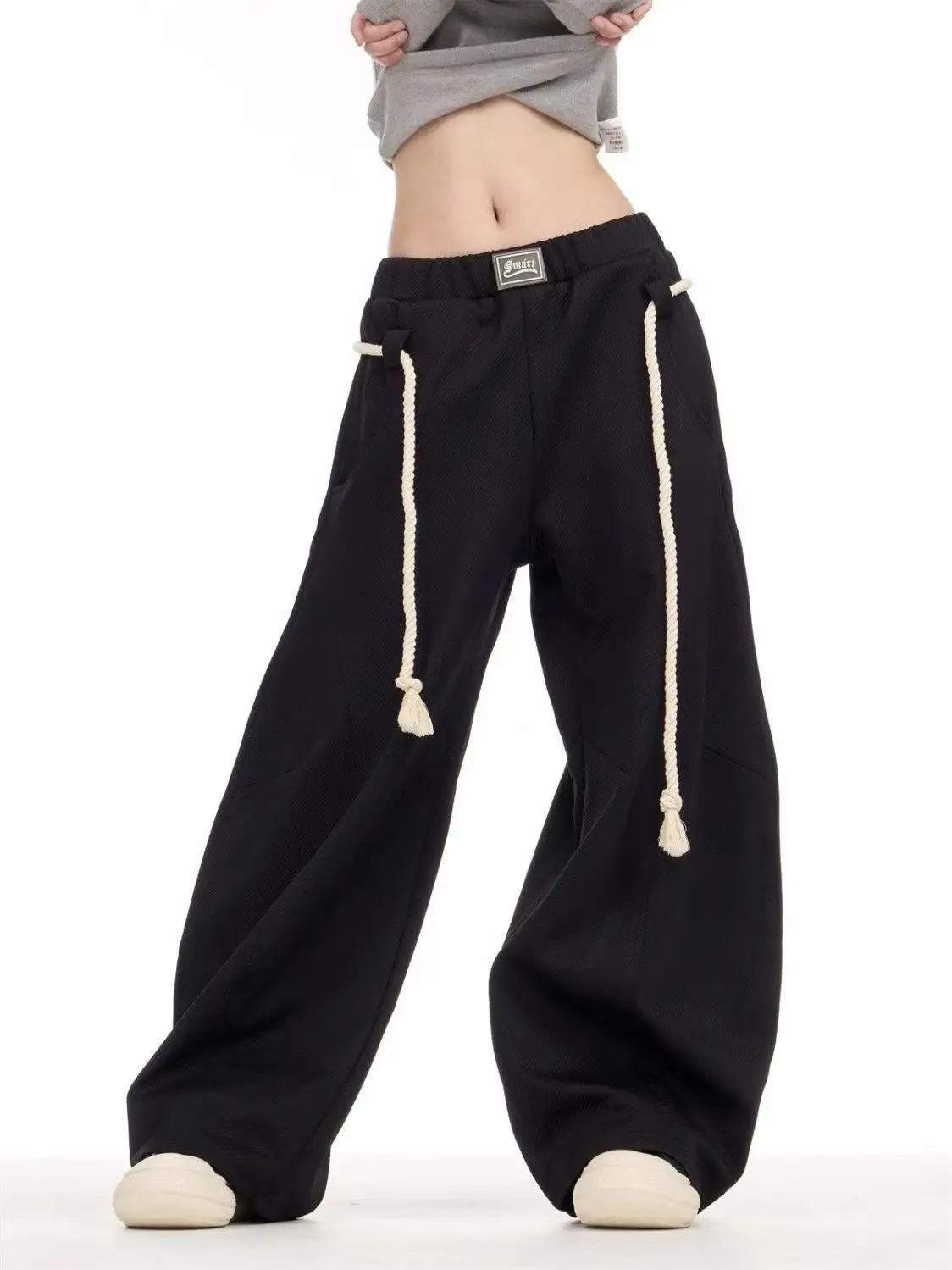 Be the first to review “Black Drawstring Casual Pants Women Street Retro Harajuku Loose Cross Legged High Waist Slim Solid Color Sports Straight Pants” 取消回复
