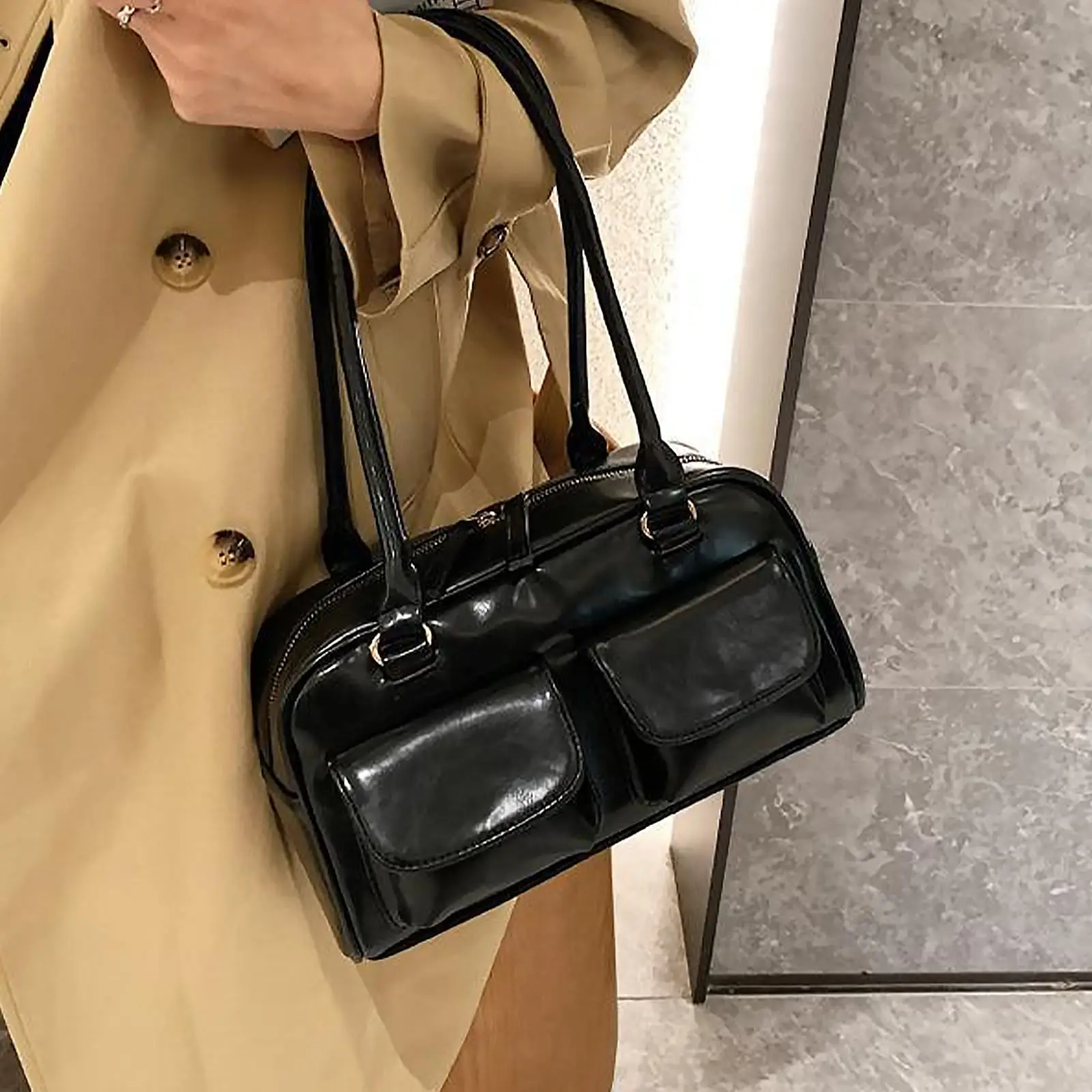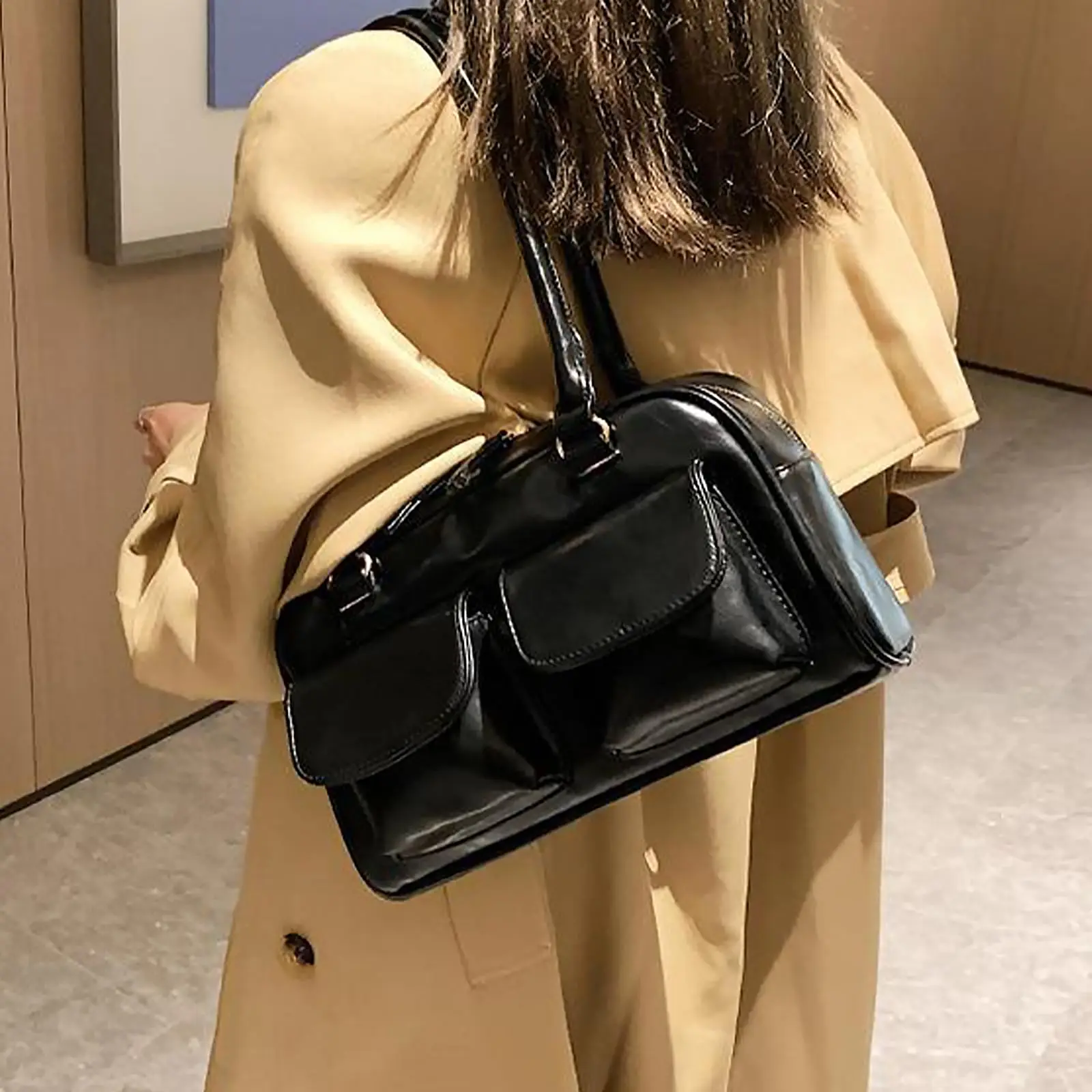 Fashionable women’s shoulder bag, crossbody bag, handbag, multi pocket bowling bag