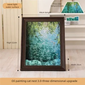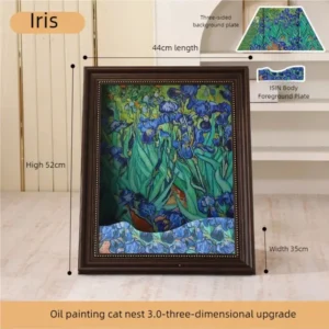 This is a nice (and cute) cat scratching box/bed. The painting is reversible, so you've got two pictures in one, and the picture is solidly made. The box is cardboard, and a bit of a pain to assemble, as it requires little cardboard tabs to be inserted (20 of them). The frame is nice and solid, and the final product is very cute (and our cat liked it immediately).