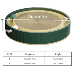 Material: The shell is PP plastic (polypropylene). and the internal scratching board part is corrugated paper; the attached balls include dazzling light balls. catnip balls. and bell balls.